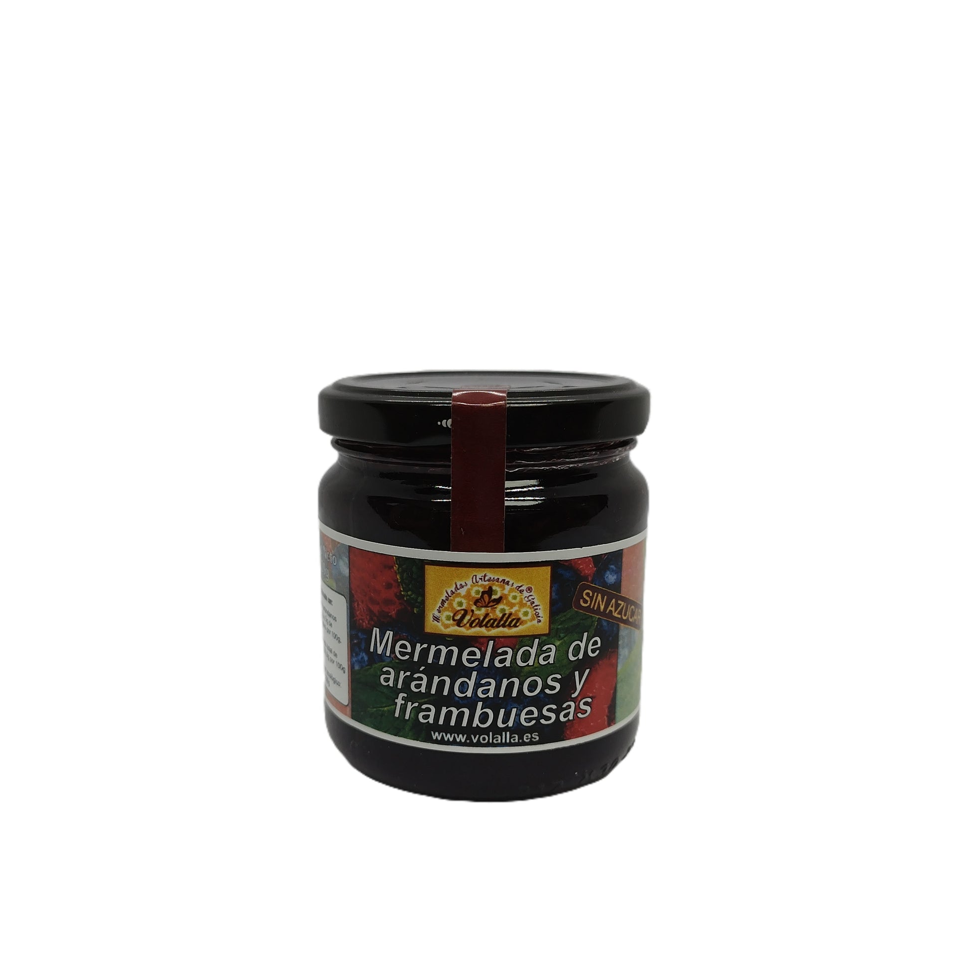 Mermelada artesana de arándanos y frambuesas sin azúcar
