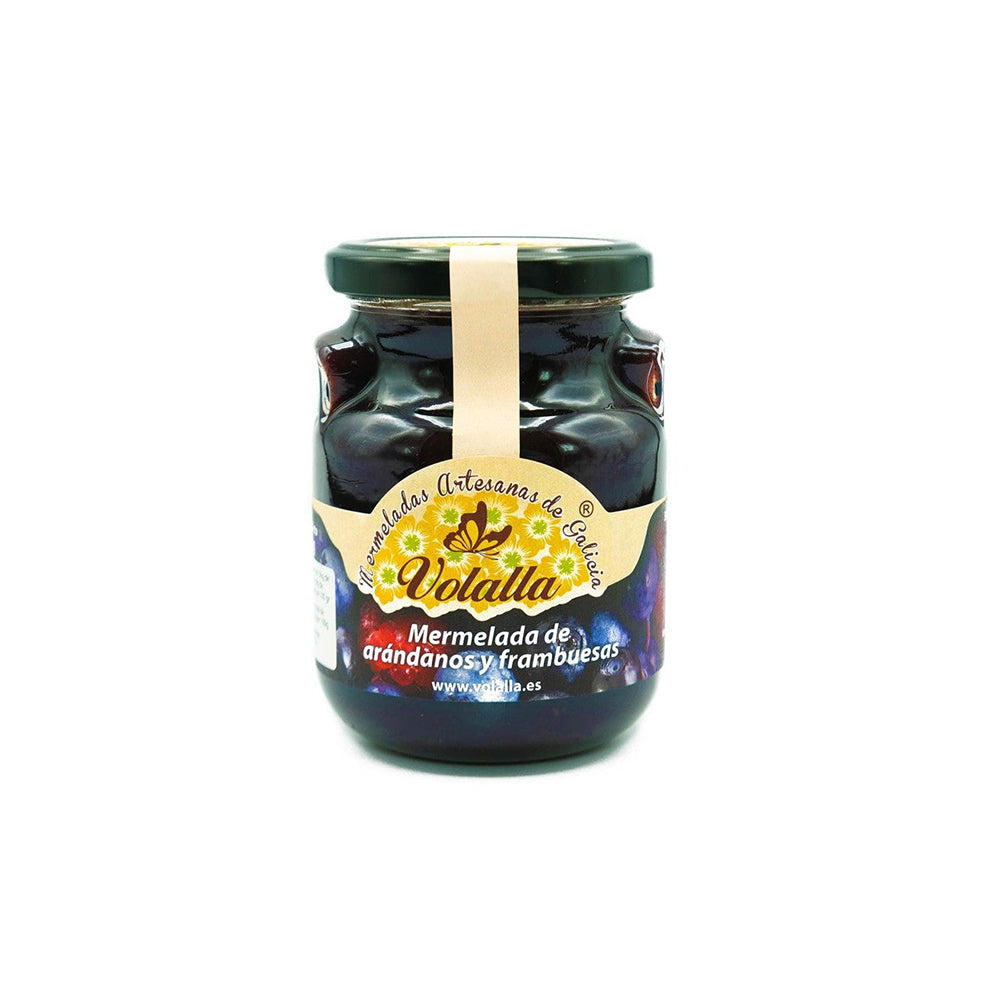 Mermelada de arándanos y frambuesas elaborada artesanalmente en Galicia.